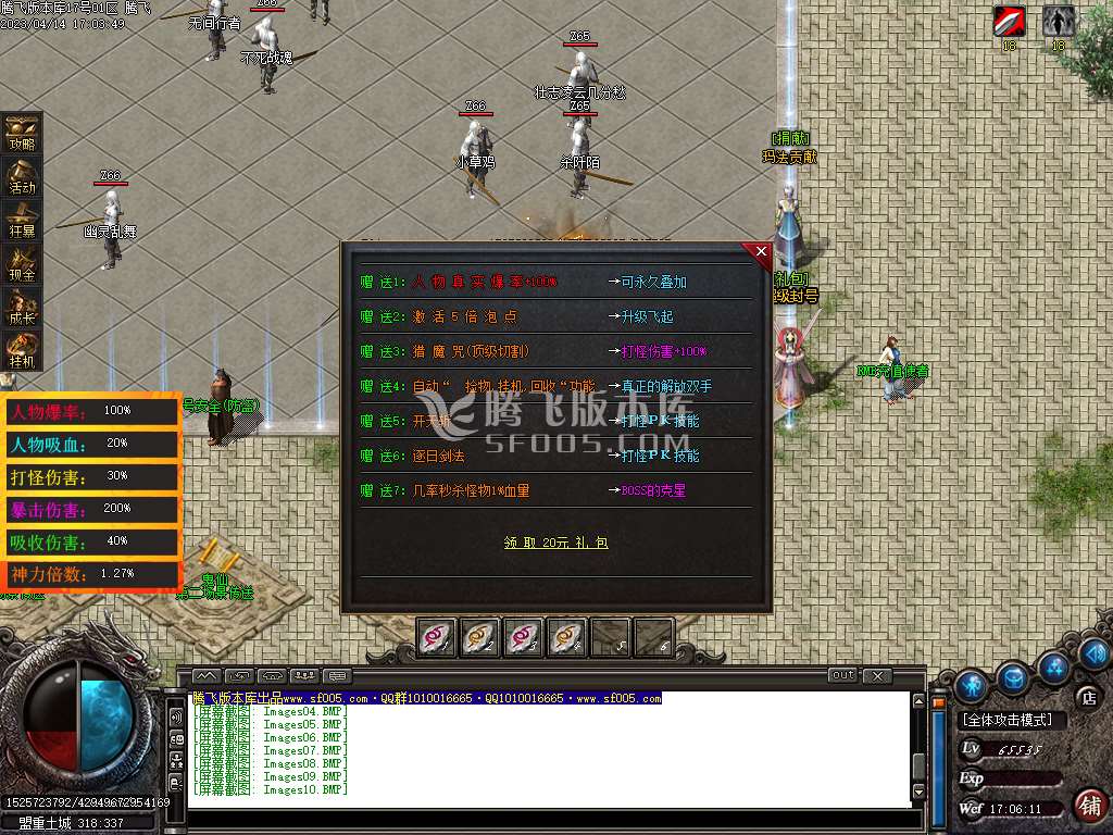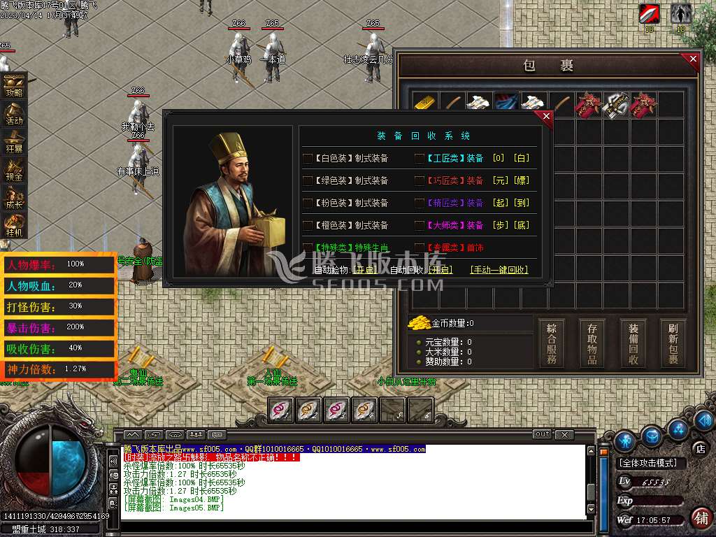 <> <1.礼包:/SCOLOR=250><土城右下有礼包NPC,想快速发展和打永久回收的可以买/SCOLOR=149>\