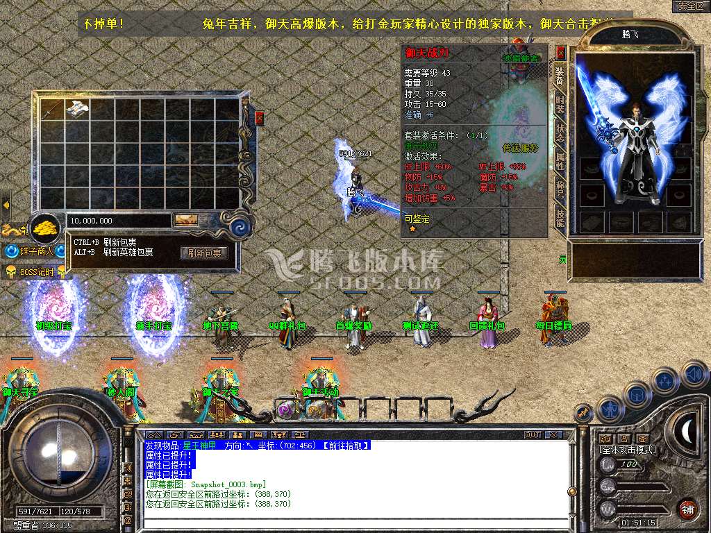 07月1.80御天合击星王+1三职业版本库-带假人光柱-沙城捐献-装备鉴定-元素使