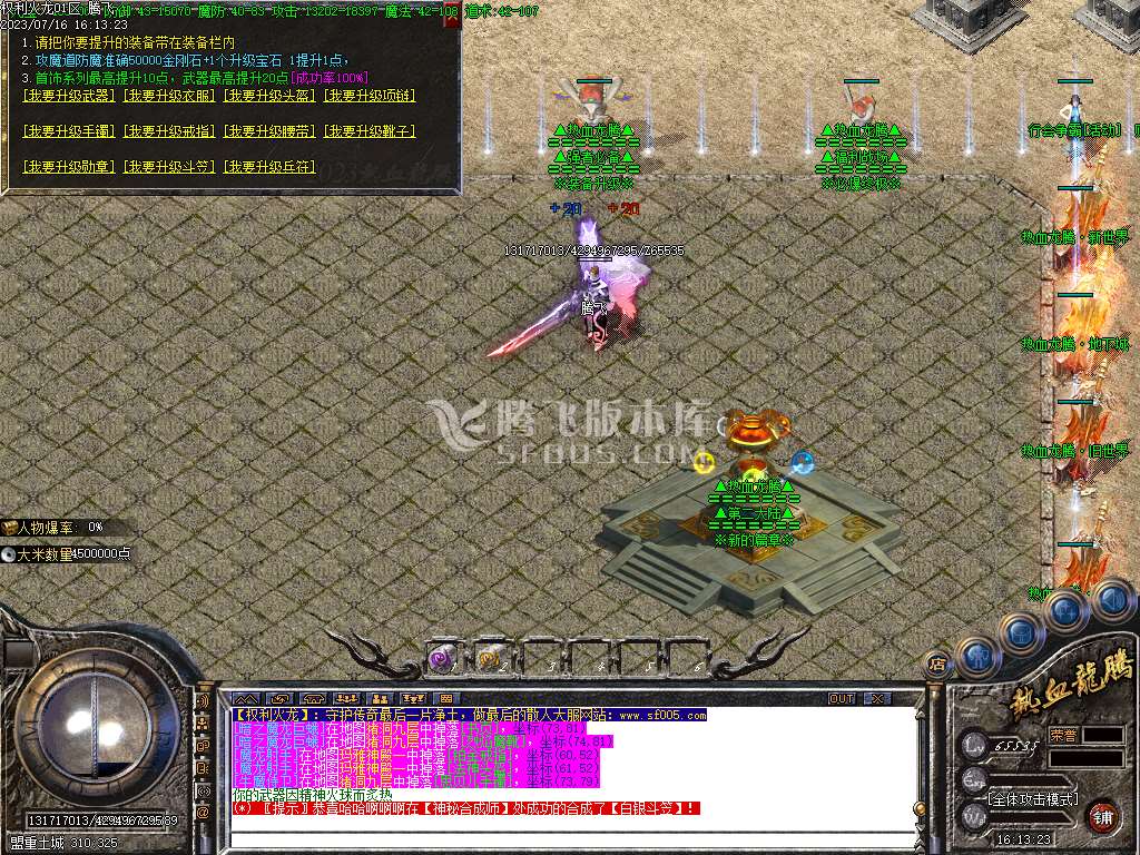 07月1.80纵情火龙三职业复古商业版本库-带假人光柱-纵情塔-每日活动-沙城捐献-