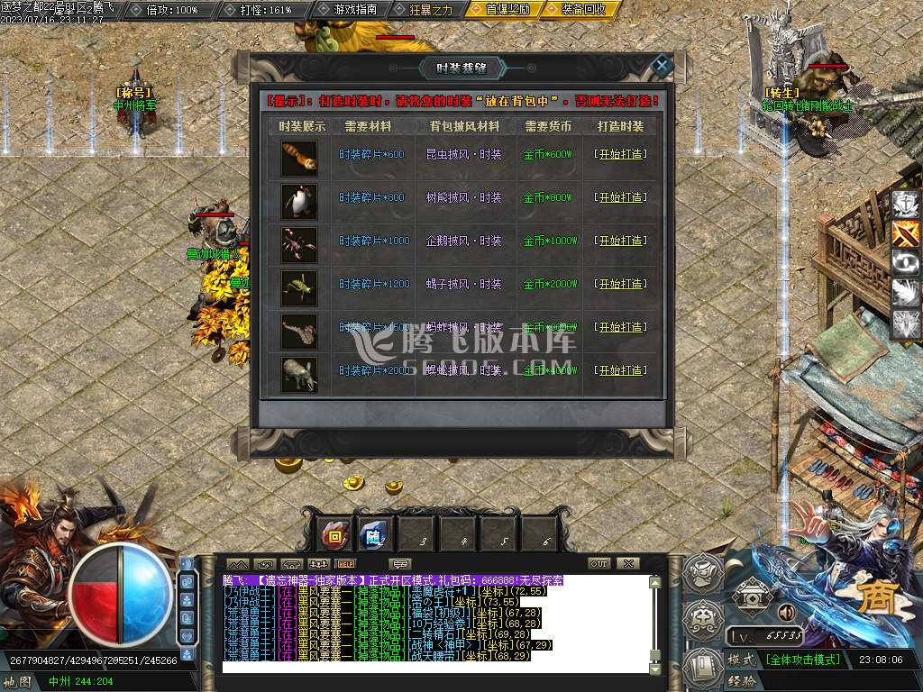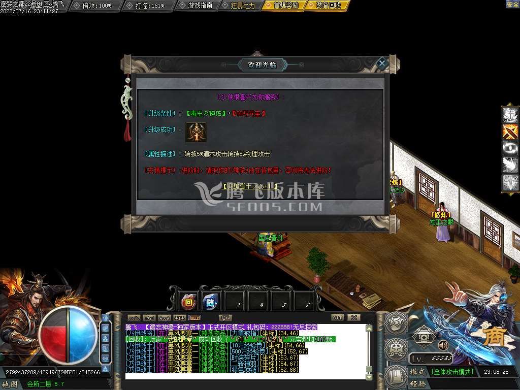 07月新遗忘神器逐梦之都单职业版本库-带假人光柱-神魔之体-装备回收-属性洗炼