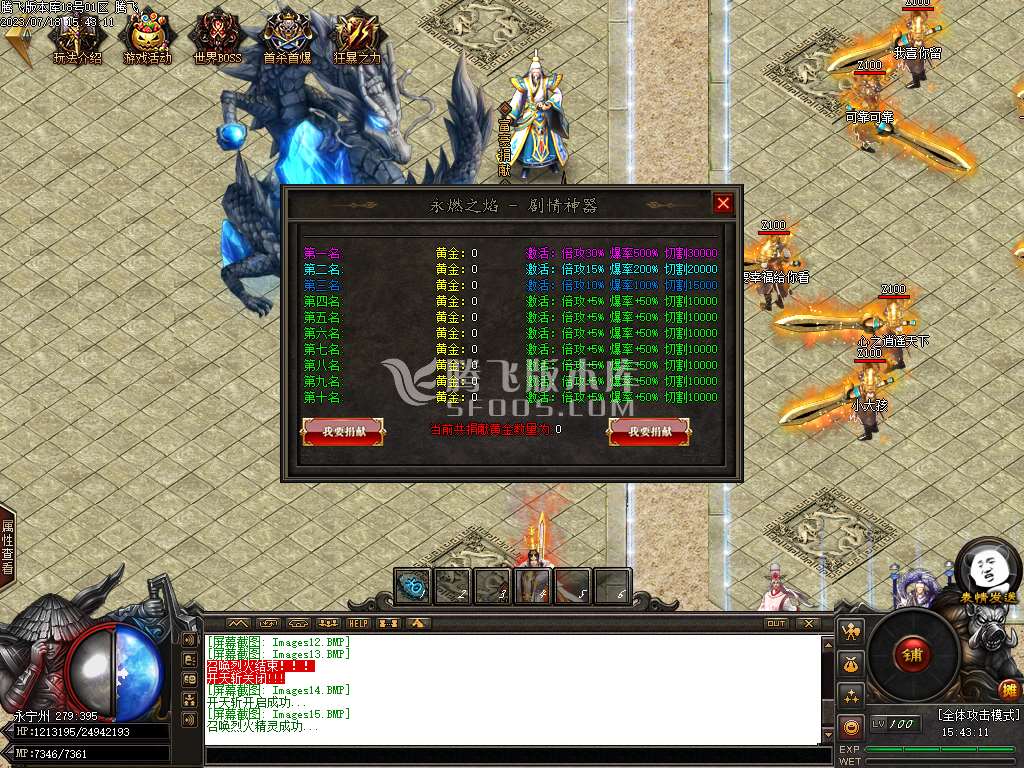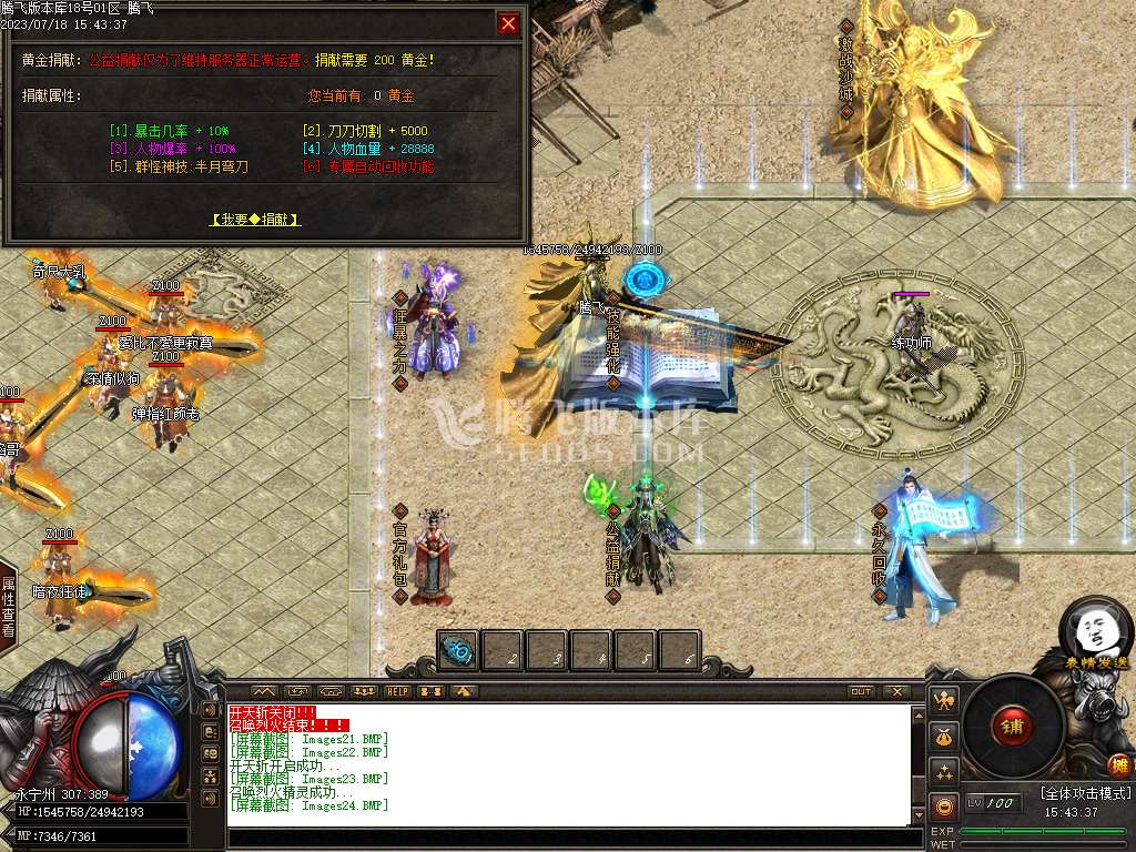月开战火龙三职业新篇章-带假人-带光柱-带攻略-大背包-沙城捐献-自动回收 [修改]