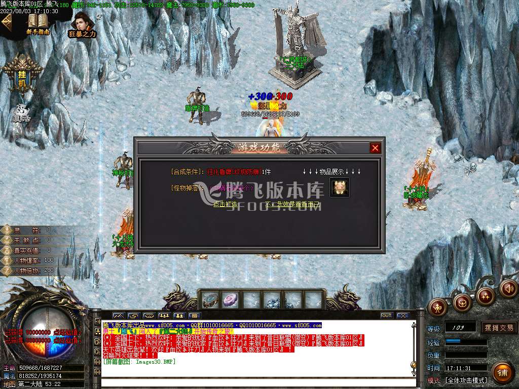 08月天煞狂化决微变单职业商业版本库-三族之战-绝杀雪域-伤害体质-盾牌合成