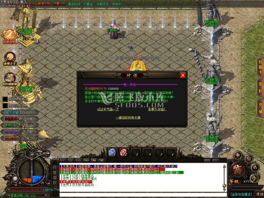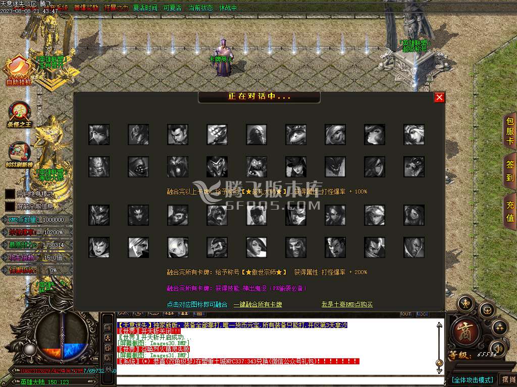08月天意迷失无限刀单职业版本库-多大陆-卡牌融合-天使玉佩-战神专属-武林称号