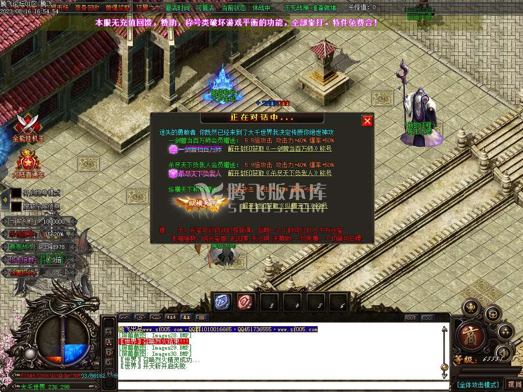 08月圣龙迷失万倍爆率单职业商业版本库-乾坤大陆-智能假人-强化大师-武林称号