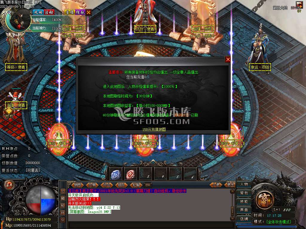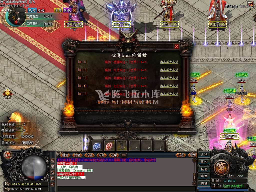 08月耗子尾汁暴躁刀速单职业商业版本库-带假人光柱-自动回收拾取-飞升使者