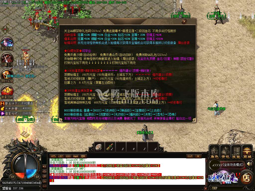 11月独家财神归来2单职业商业版本库-特殊合成-锻炼体质-神秘异火-装备升级