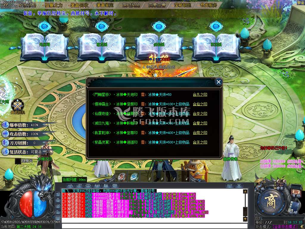 11月独家龍吟单职业攻速神器商业版本库-六大陆-神话称号-无敌勋章-时装合成