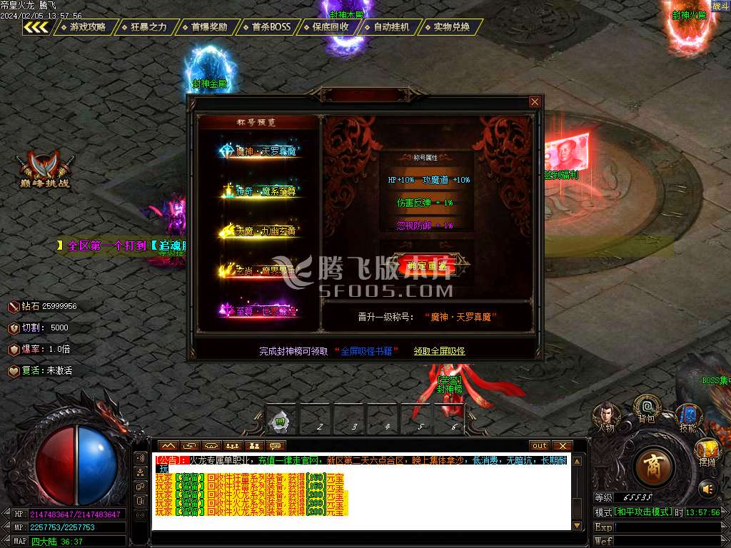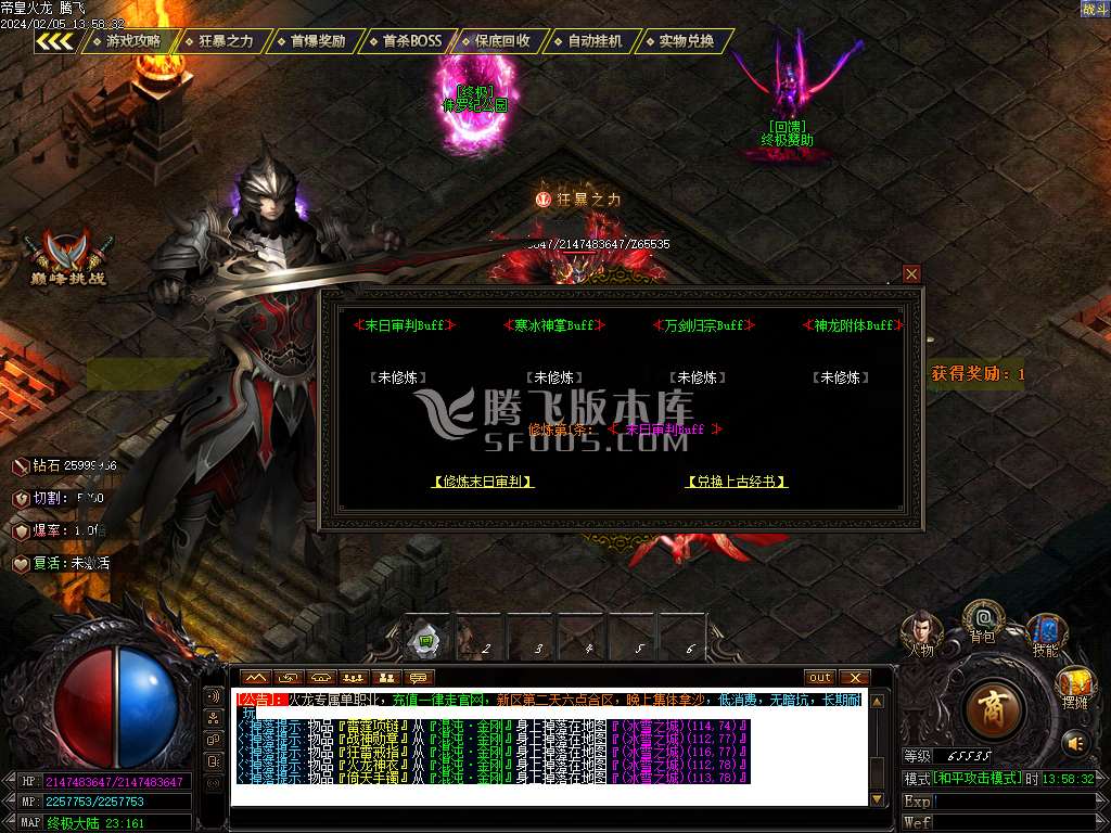 2月帝皇火龙微变单职业商业版本库-带假人-四大神兽-切割神器-BUFF洗练-翻牌激活