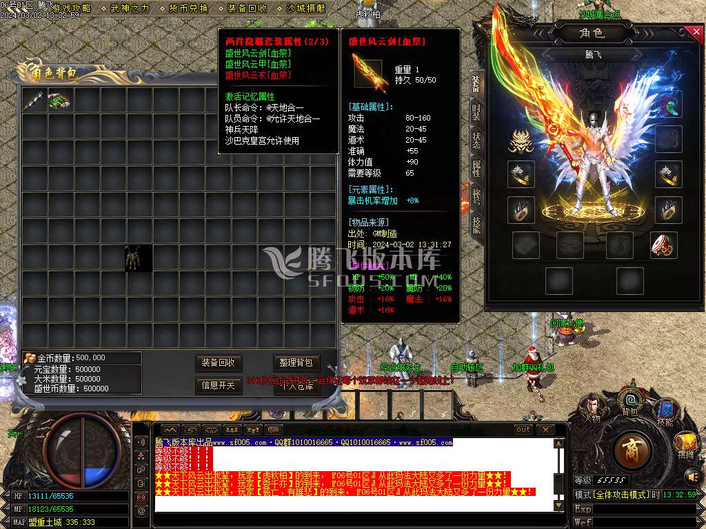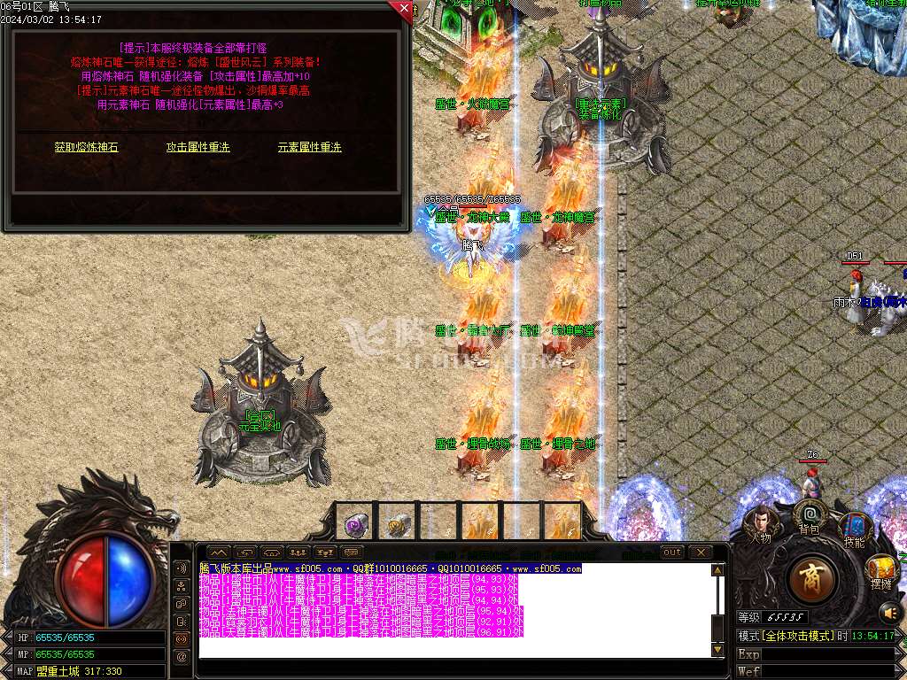 1.85盛世风云火龙元素三职业传奇版本库-带假人-必争之地-装备炼化-飞仙封神