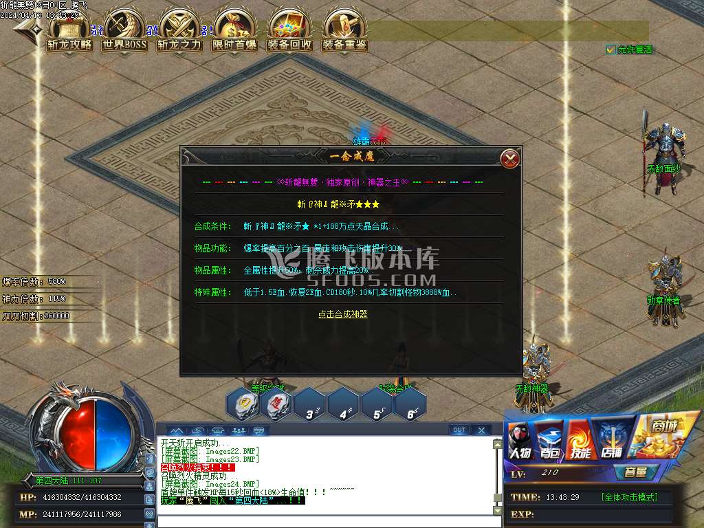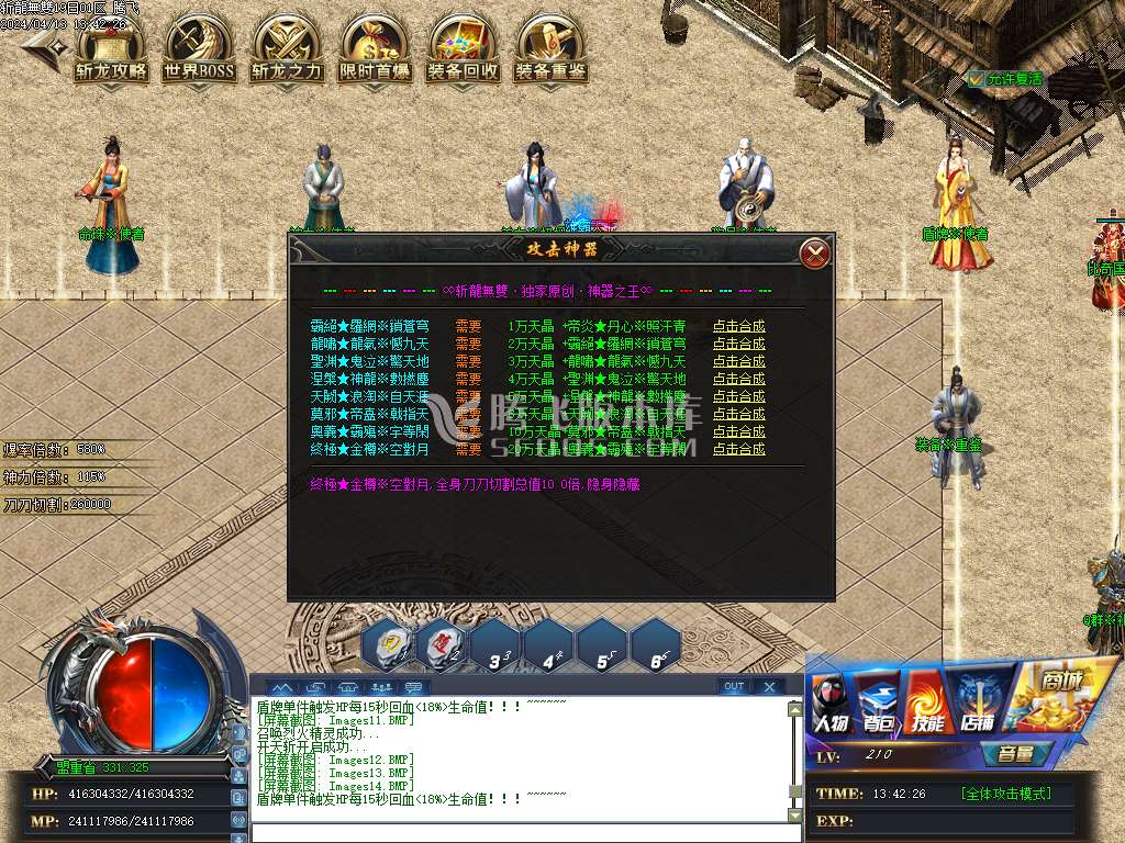4月斩龍无双神器单职业版本库-装备重鉴-武魂神坛-梦幻虚空-攻击神器-时装合成
