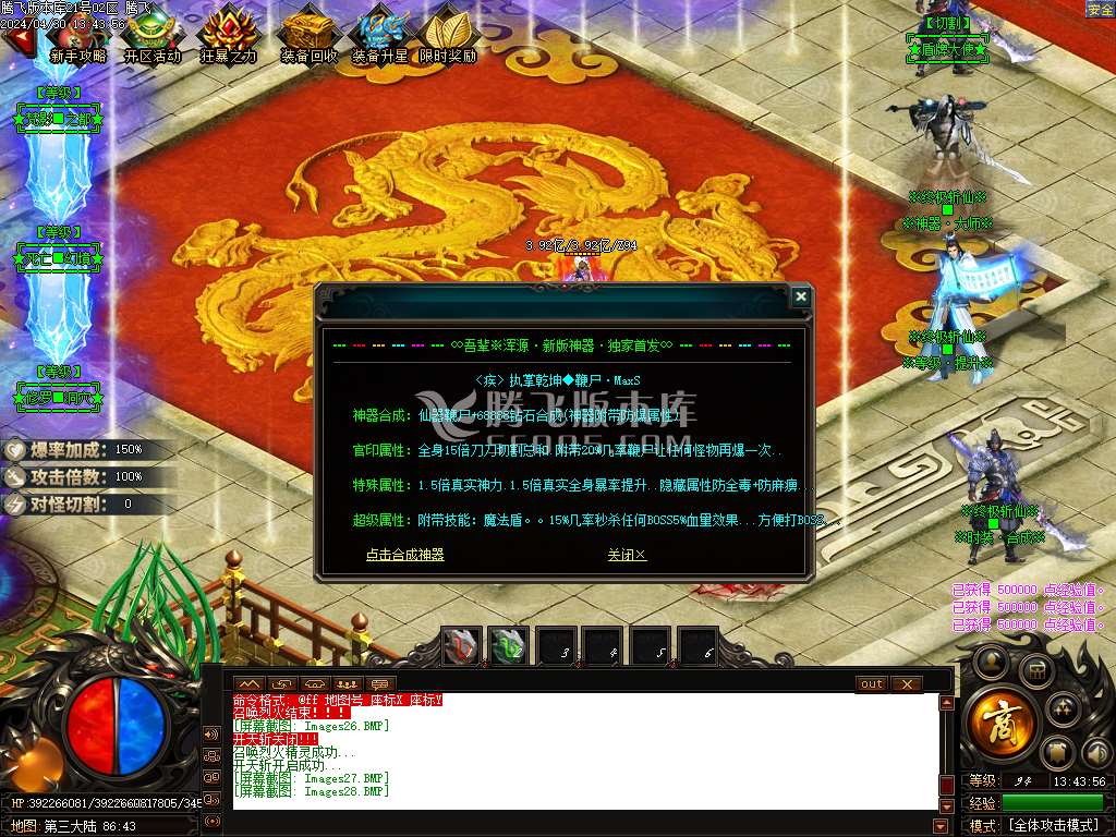 4月吾辈斩仙神器单职业传奇版本库-带假人-装备升星-幽灵神殿-神话称号-无敌勋章 [修改]