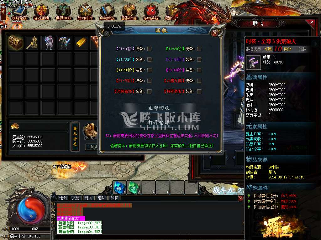 6月霸王决不服来战战场厮杀单职业传奇版本库-炼狱称号-觉醒炼狱-封神系统