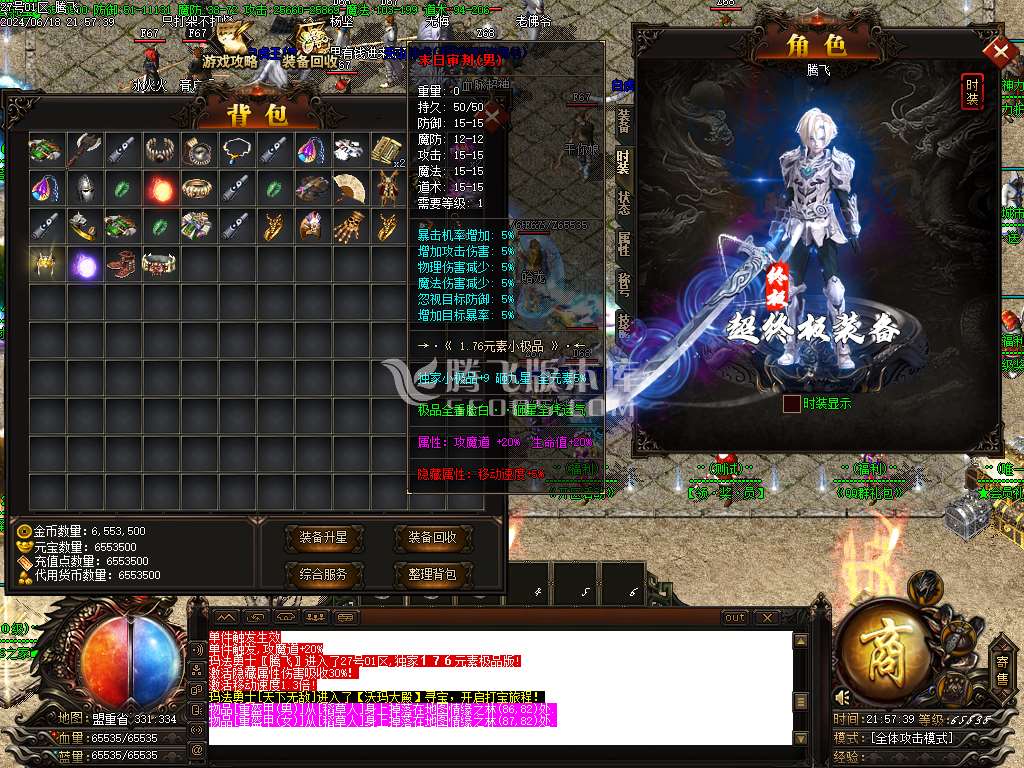 6月1.76狂风元素极品+9复古三职业传奇版本库-武器大师-赤金神器--特戒合成