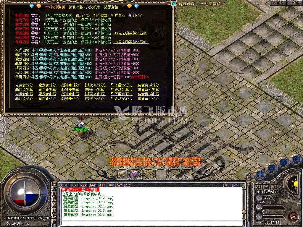 6月1.85道盾合击传奇版本库-极品[附魔]-天上人间-属性[增强]-强化时装-强化四格