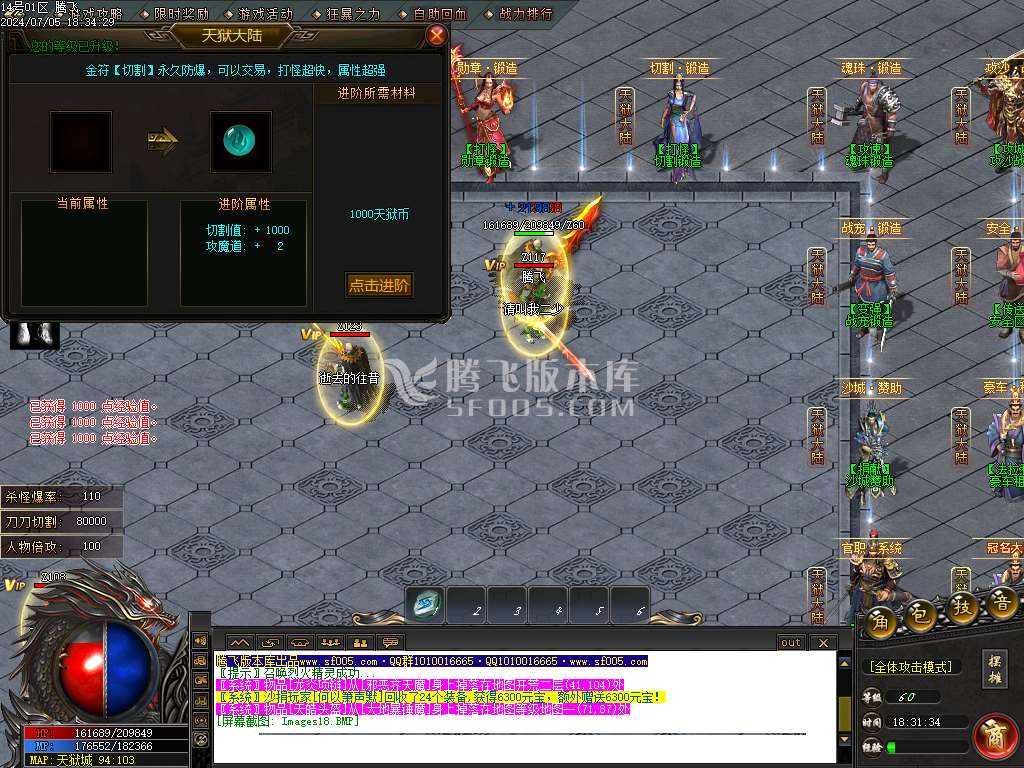 7月天狱大陆单职业传奇版本库-官职系统-装备强化-称号晋升-魂珠BUFF-渡劫炼体