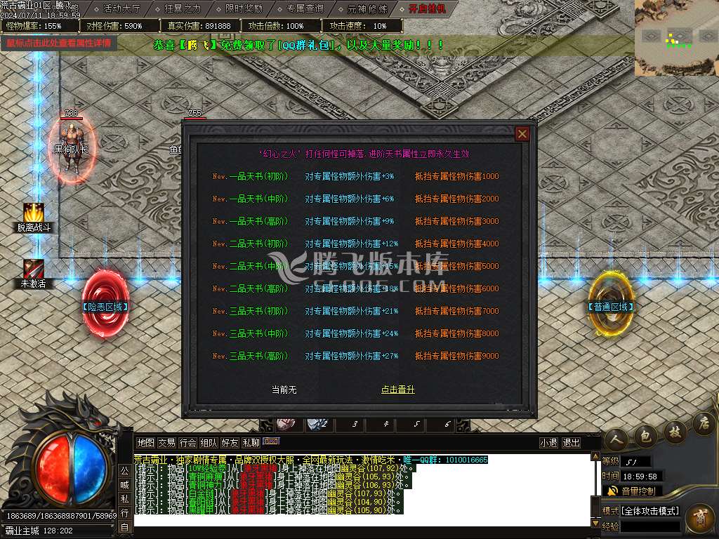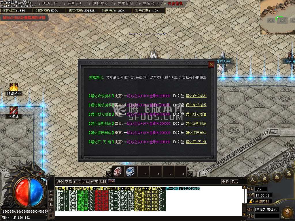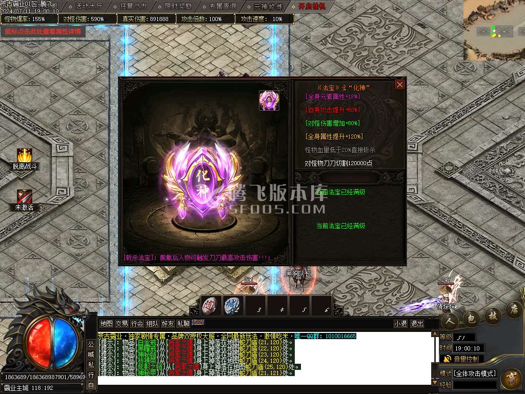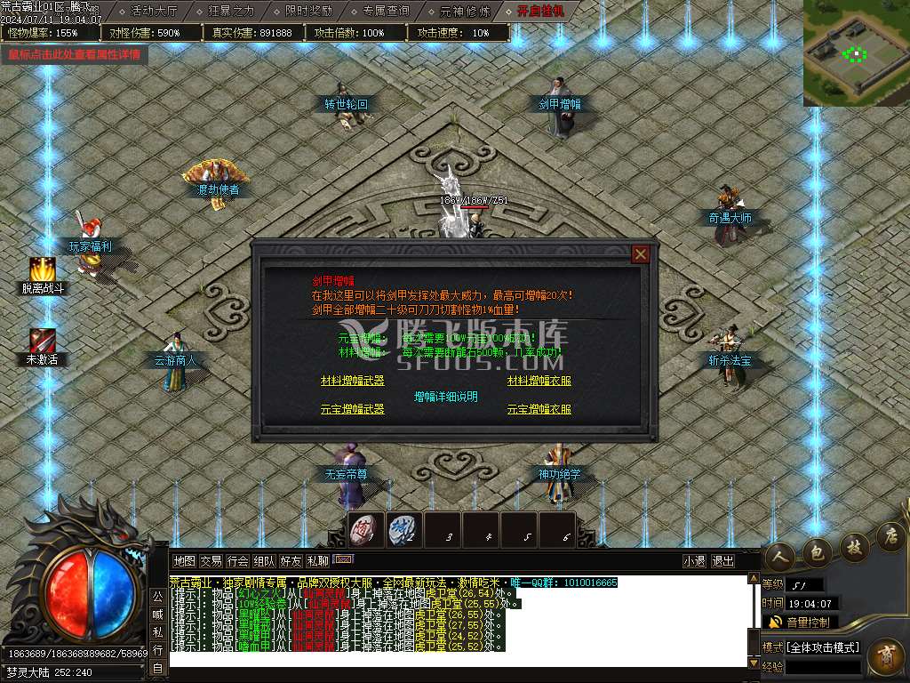 7月荒古霸业专属神器单职业传奇版本库-神器任务-武功秘籍-渡劫使者-剑甲增幅