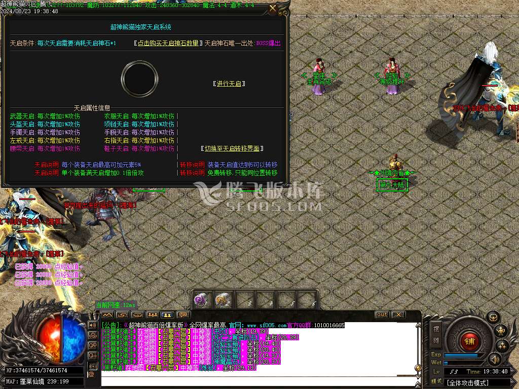 8月超神熊猫精修百倍爆率版专属神器单职业版本库-剑甲打造-特殊合成-装备火祭