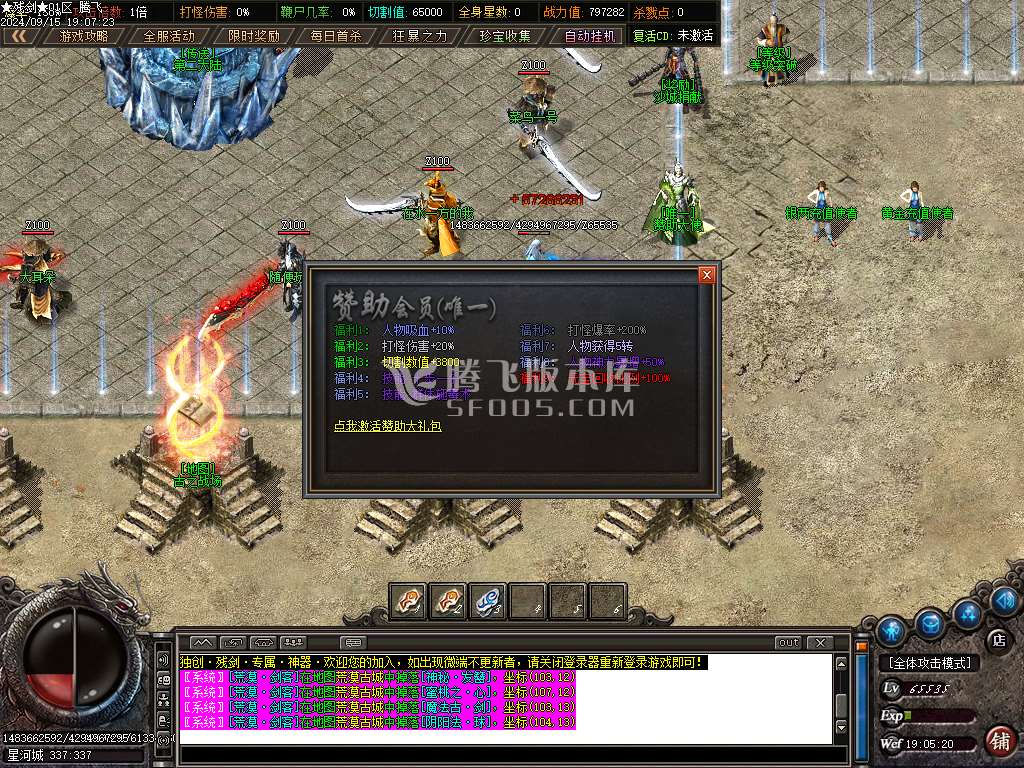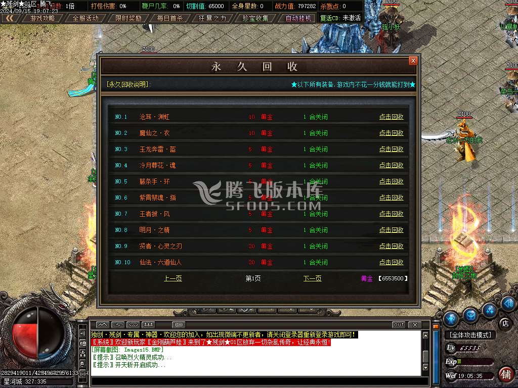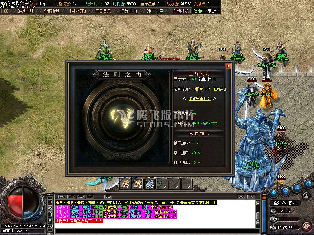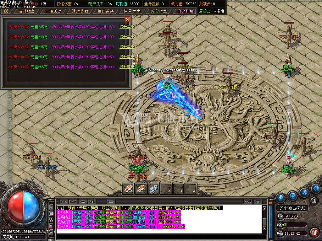 9月残剑神器品牌大服攻速单职业GM版本库-三大陆-达摩系统-装备强化-真气系统