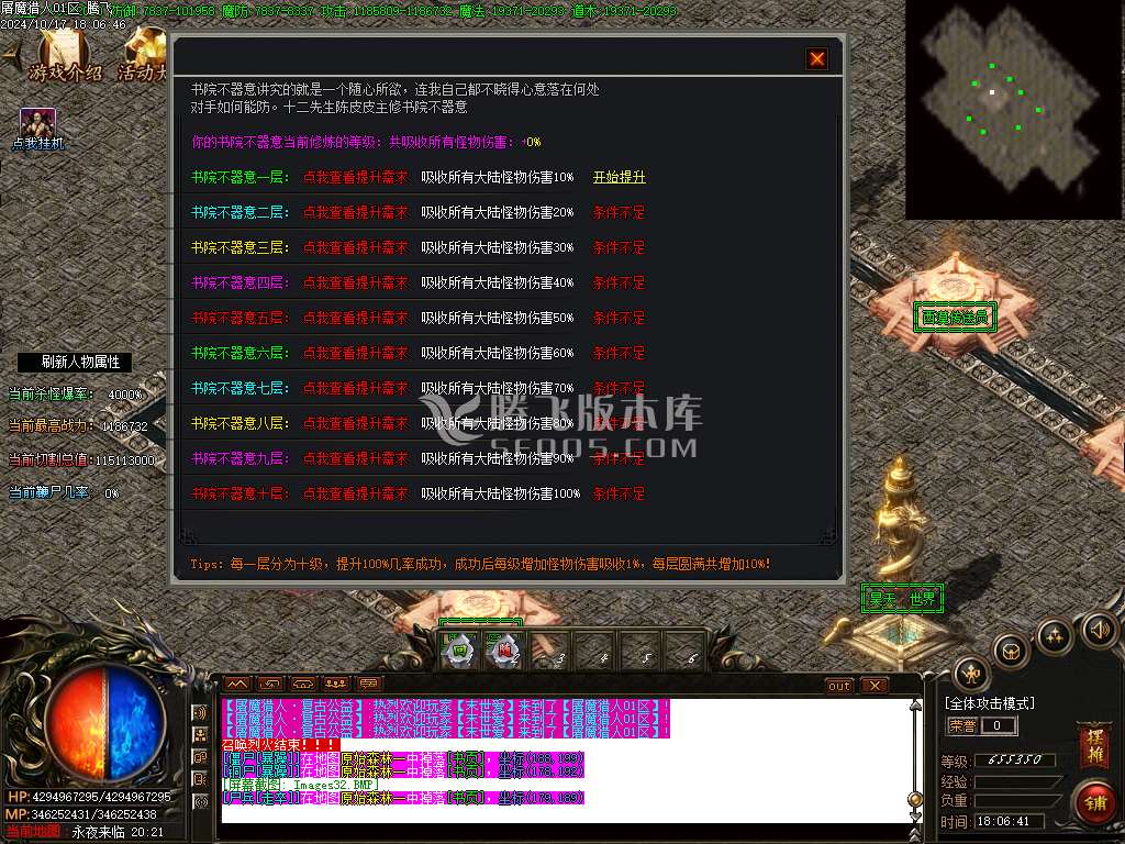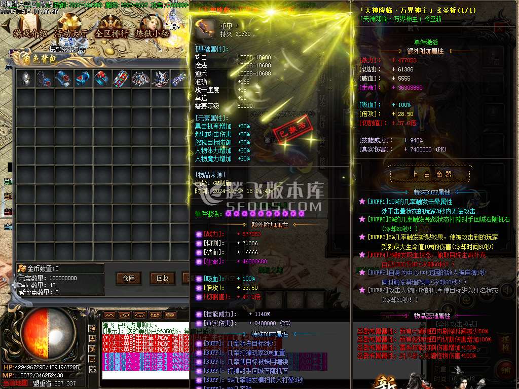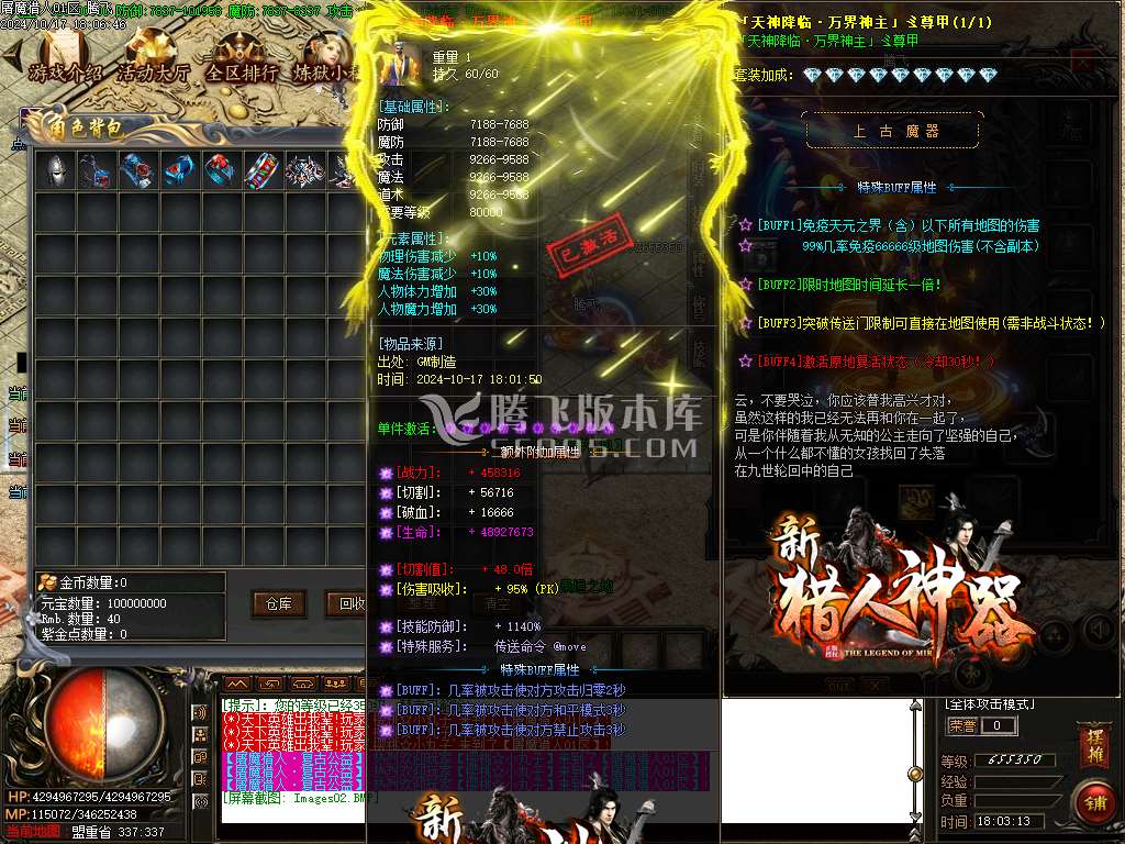 10月屠魔猎手无限刀十三大陆单职业传奇版本库-五行之力-十字禁咒-神装融合