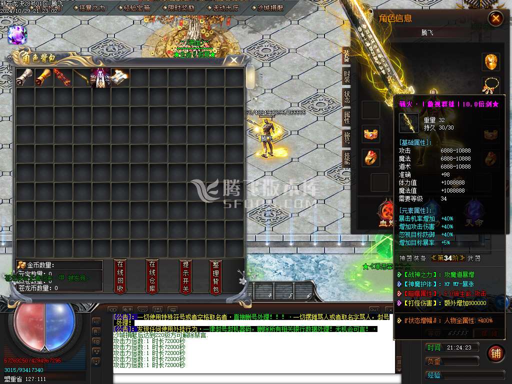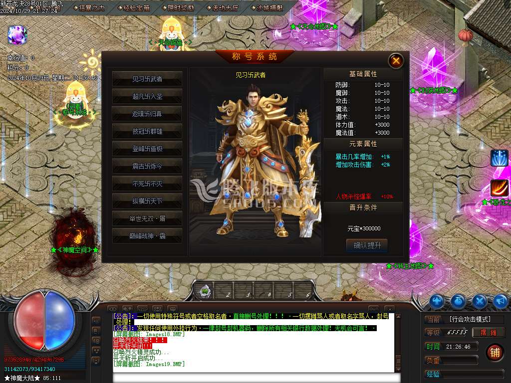 10月独家新苍龙决单职业3.3版传奇版本库-三大陆-神魔裂痕-称号晋升-神龙护体