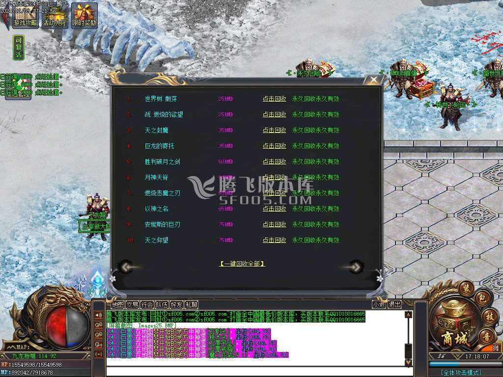 12月九龙迷失神器激情三职业商业版本库-带假人-光柱-自动回收-特殊合成