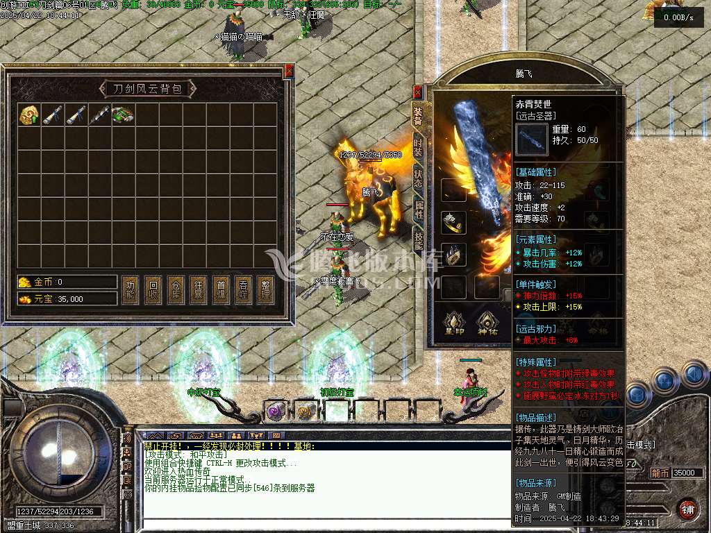 4月刀剑风云复古剧情神器专属单职业GM服务端-翅膀锻造-生肖使者-装备鉴定