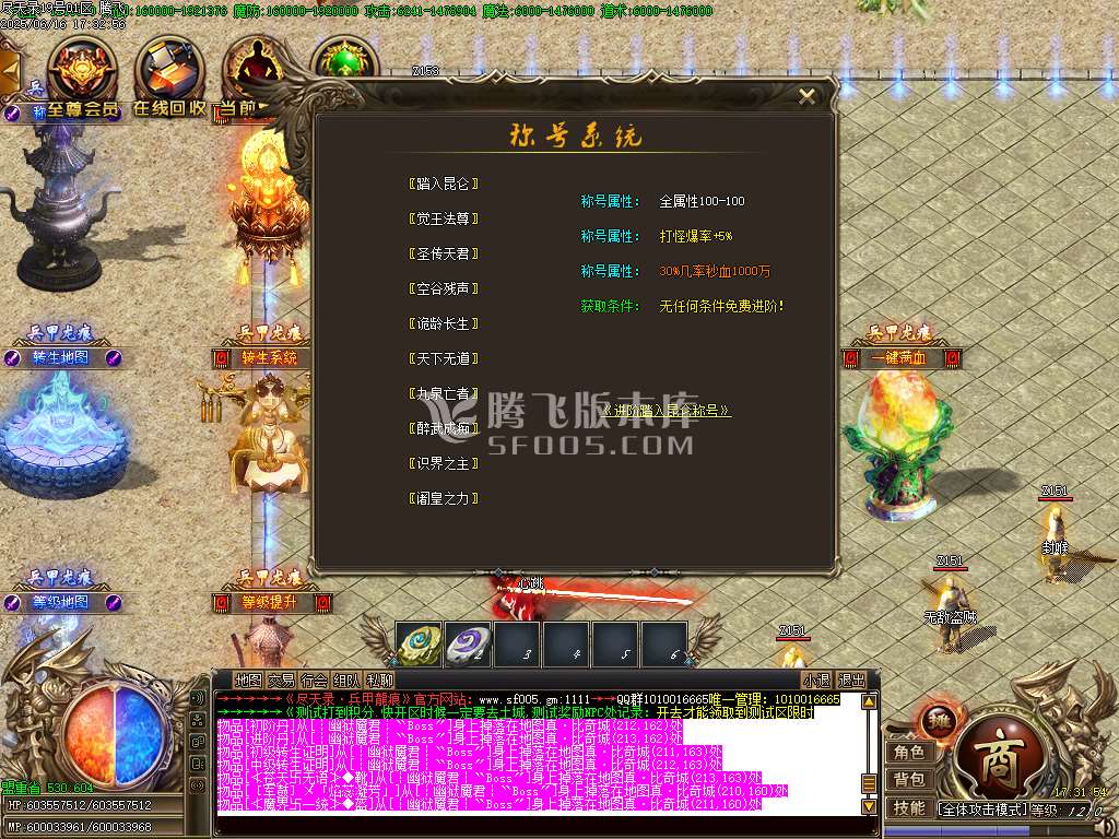 6月尽天录之兵甲龙痕单职业GM版本库-五大路-猎魂觉醒-封号系统-威望系统-通天塔