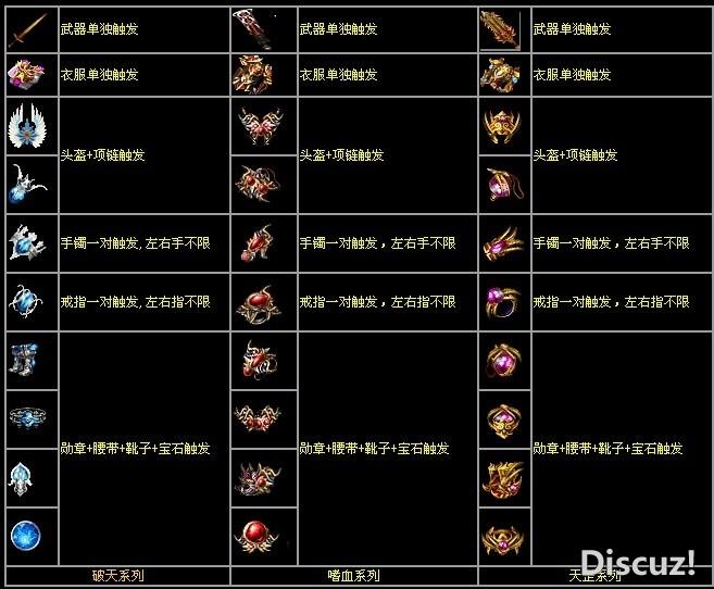 武器单独触发隐藏属性,衣服单独触发隐藏属性,项链+手镯+戒指任意3件触发隐藏属性