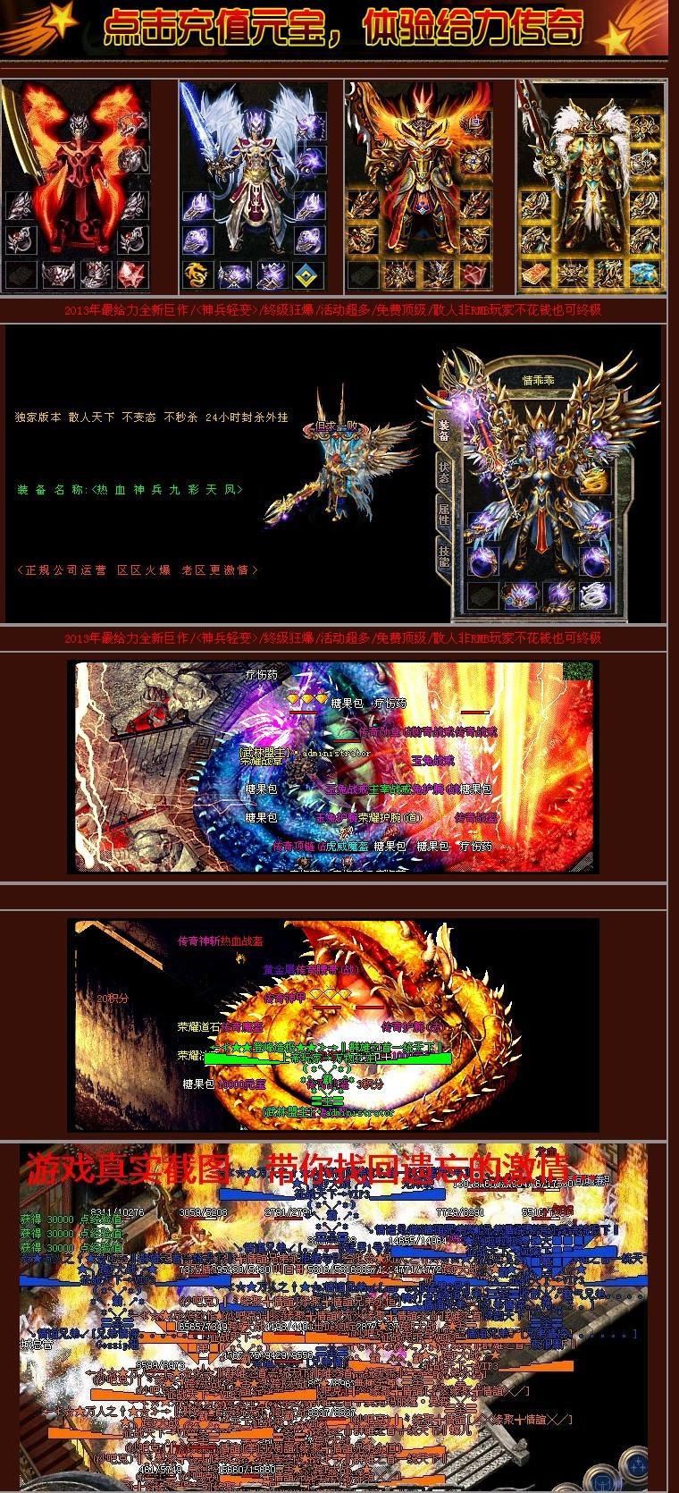 神兵独家轻变,2013最新人气火爆,PK靠技术激情,难得一见的好服,如果感觉本服不错叫上朋友一起激情