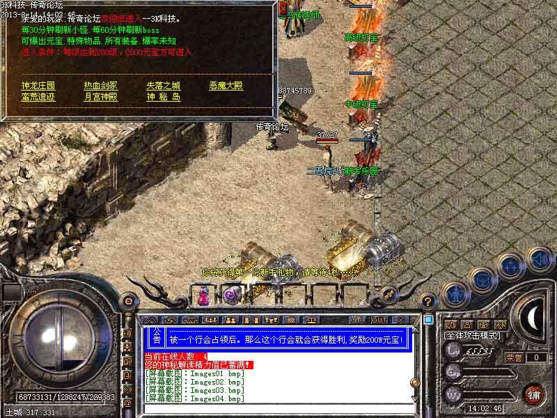 为了增加游戏趣味性,新增设:攻沙期间皇宫内秒涨经验内功、皇宫内外刷怪、厮杀闭关地图刷怪、各种装备合成...
