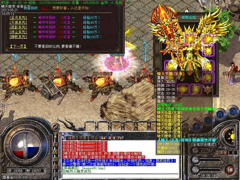 2、【新颖特色】:装备好打,等级好升,元宝好混,所有装备全部爆出,真正做到让散人玩家免费也能终极套!