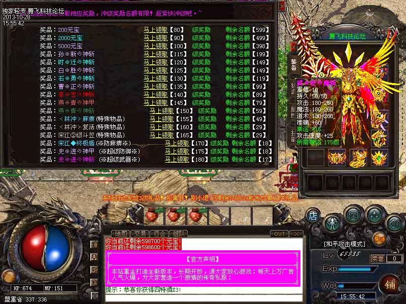 【攻城奖励】:新区第二天晚上8点统一攻城奖励388万元宝,老区天天激情攻城奖188万元宝!