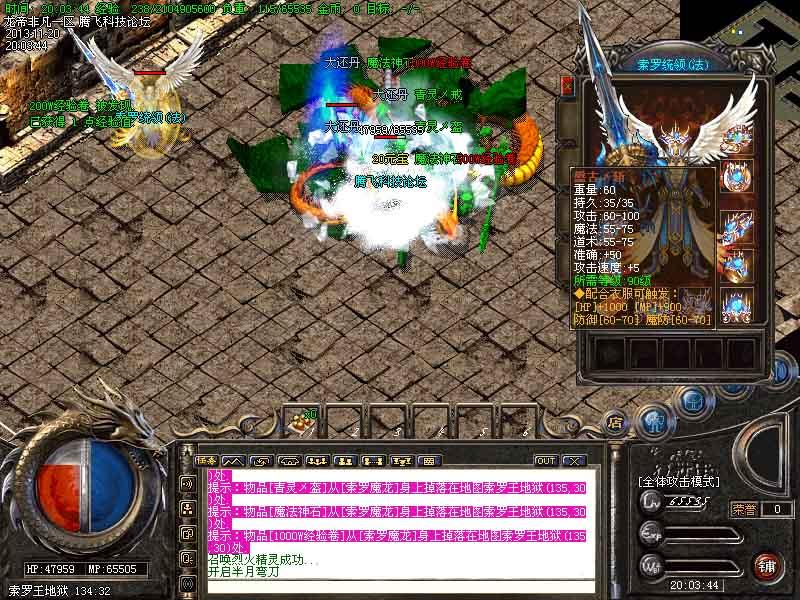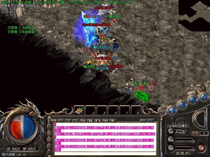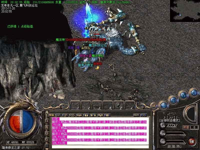 游戏介绍③ >> 大小怪物都可以暴元宝,金刚石,奖卷,龙珠,人民币,刮刮彩,物品丰富,不会乏味,只要你肯花时间不花钱照样当爷!