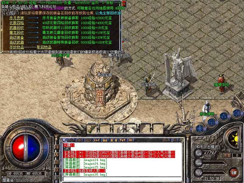③: 我们保证:所有物品可以爆出,道士宝宝 增强攻击,霸王守卫攻击力度+强,法师火墙威力,平衡三职业. ④: 倚天武器衣服,贵族武器衣服全部免费合成,只要你有时间,散人也能到终极,BOSS爆1亿经验卷,让你回到以前守BOSS的感觉.