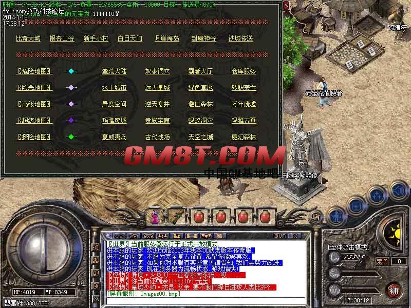 【国家宝藏】:每天11,14,17,20,23,1,3点自动弹出窗口进入【国家宝藏】,爆率相当好,没有不爆的,怪物攻击、防御、血量比终极地图少10倍,千万不要错过[限60分钟]