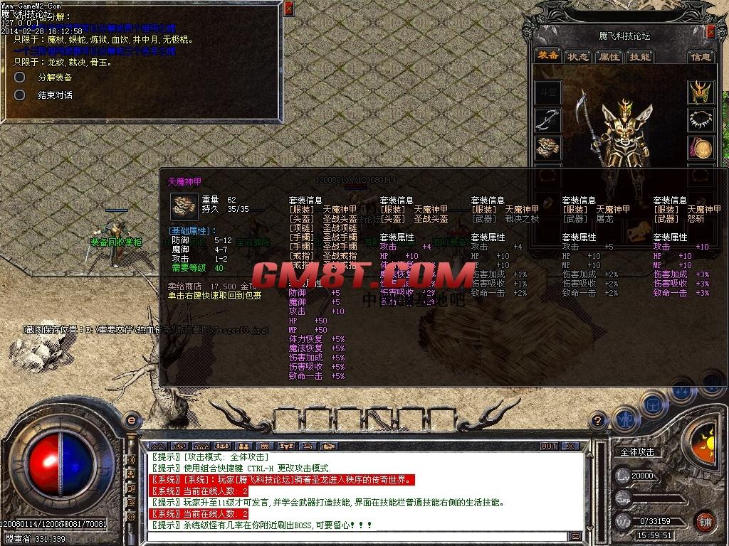 【系统】:装备可金币,为了金币不贬值,推出装备升阶系统,升阶装备在包袱右下角的菊花里。(五合一)
