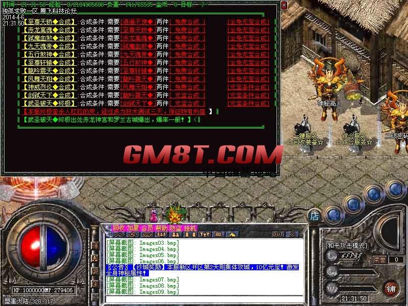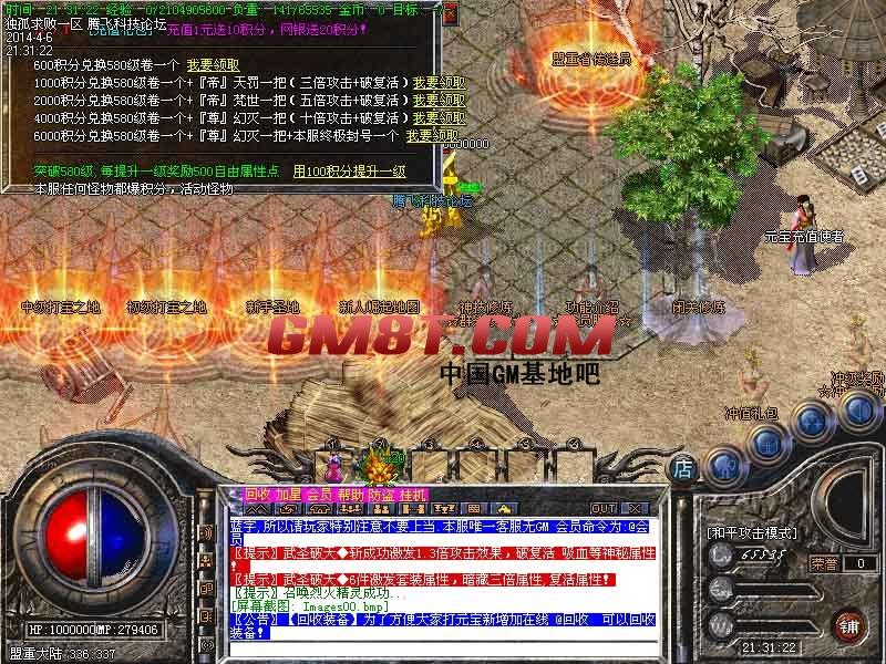 1、【元宝充值】:元宝比例1:500万,点卡多送80%,网银多送100%