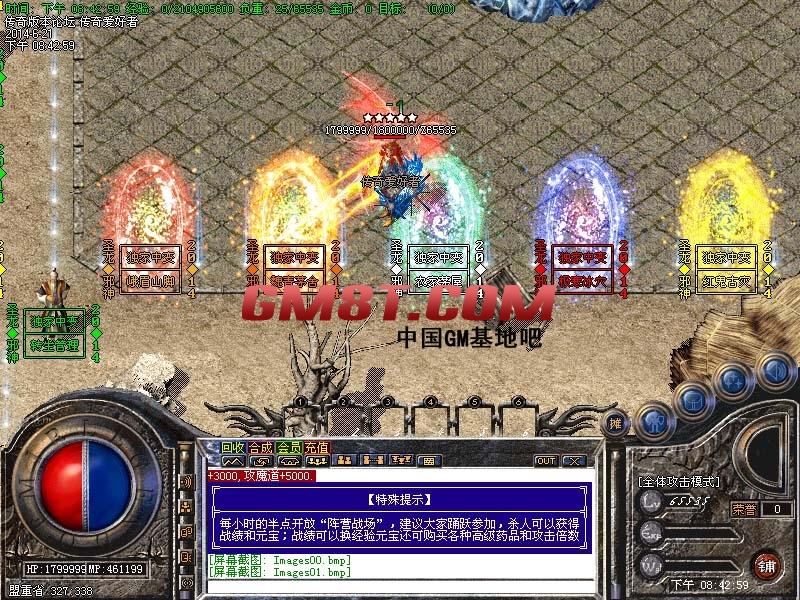 每小时的半点开放“阵营战场”,建议大家踊跃参加,杀人可以获得战绩和元宝;战绩可以换经验元宝还可购买各种高级药品和攻击倍数