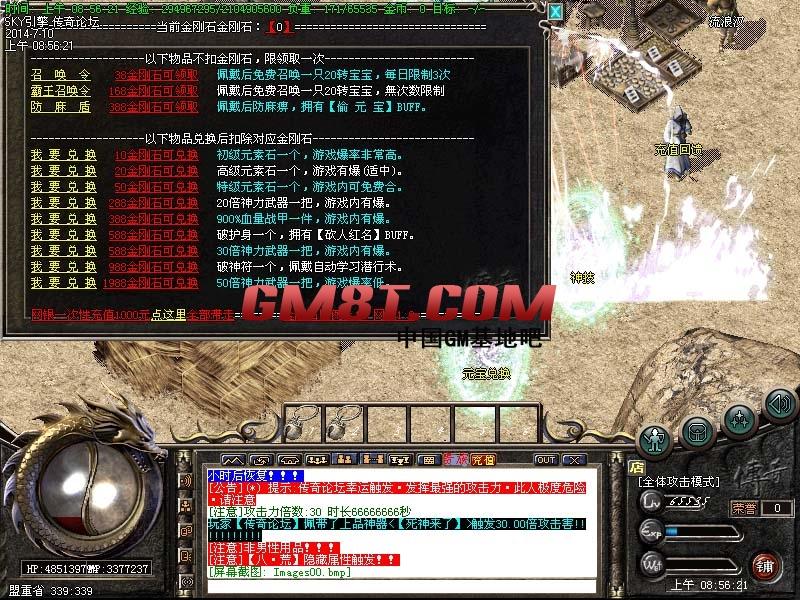 【游戏介绍】:也可以直接跑新手地图刷元宝买转生,本服十八转之前转生材料都能打到,十九以后的材料可以在转生之书处合成,材料全是三合一不收费!
