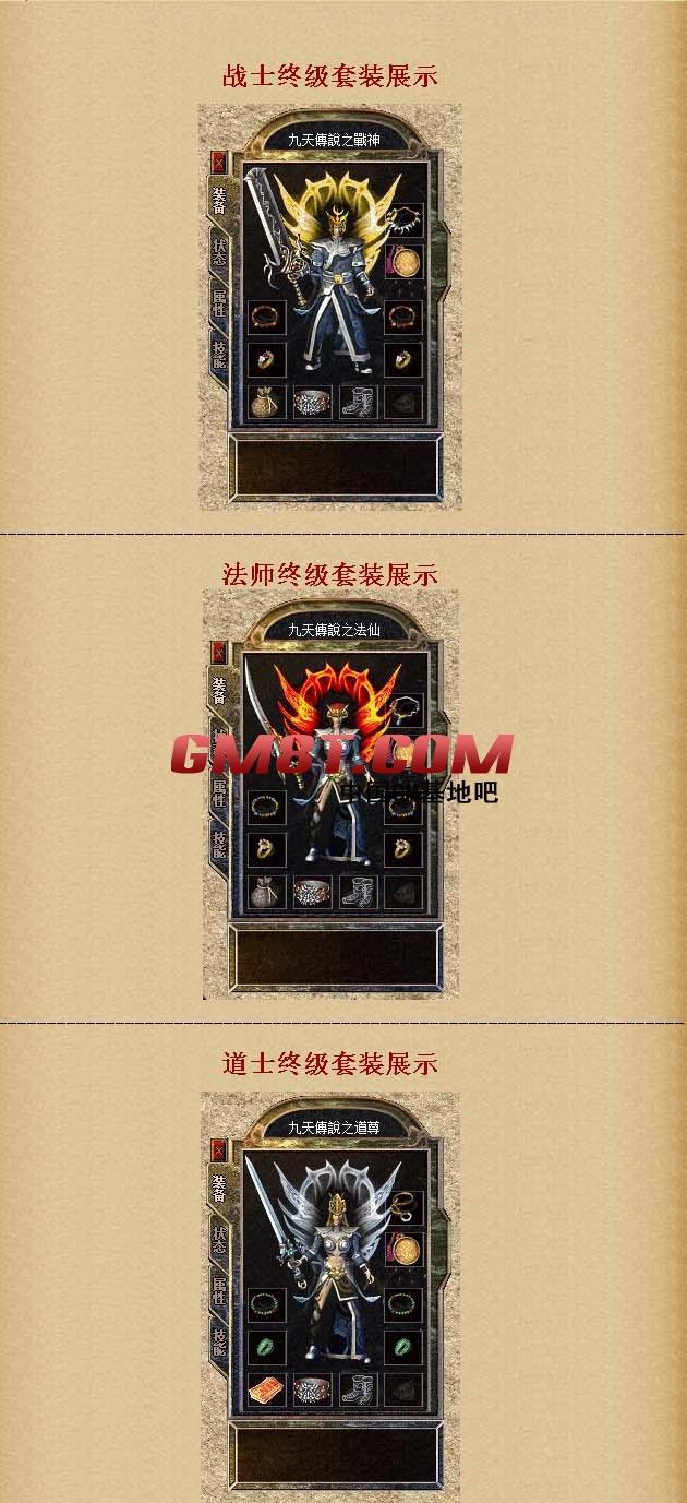 【特色③】:坚决不卖任何装备、人物等级等。所有装备全靠爆,所有等级全靠练。九天带你穿越时间、重享当初美好时光!