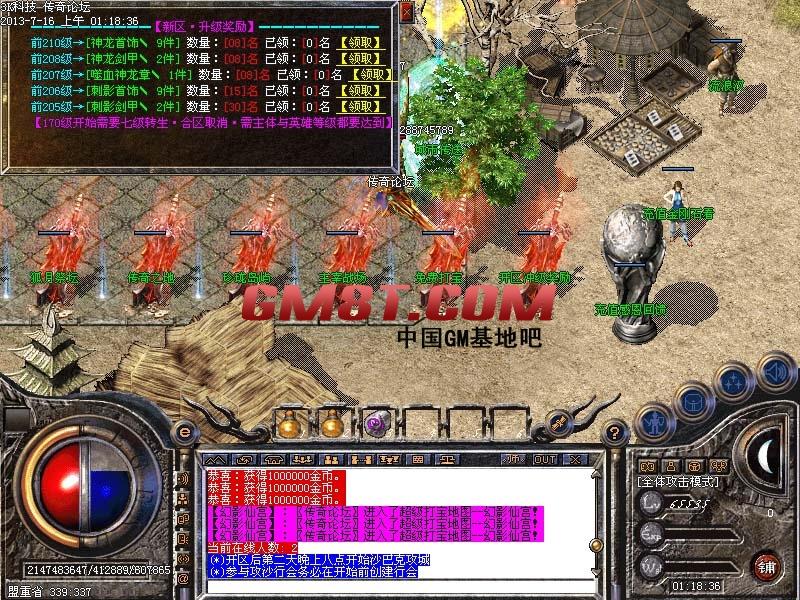 13:【功沙奖励】:本服新区第二天集体抢沙,新区占沙行会奖励元宝6000万,老区奖励3000万!