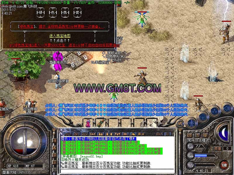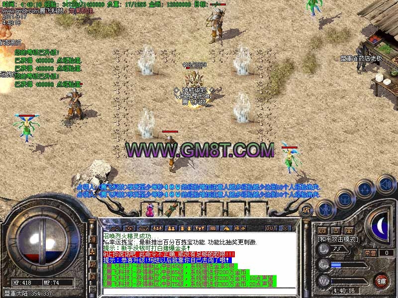 经验为盛大的500倍在传送员处直接传送到各地图的中层,免得一层一层的跑去麻烦.