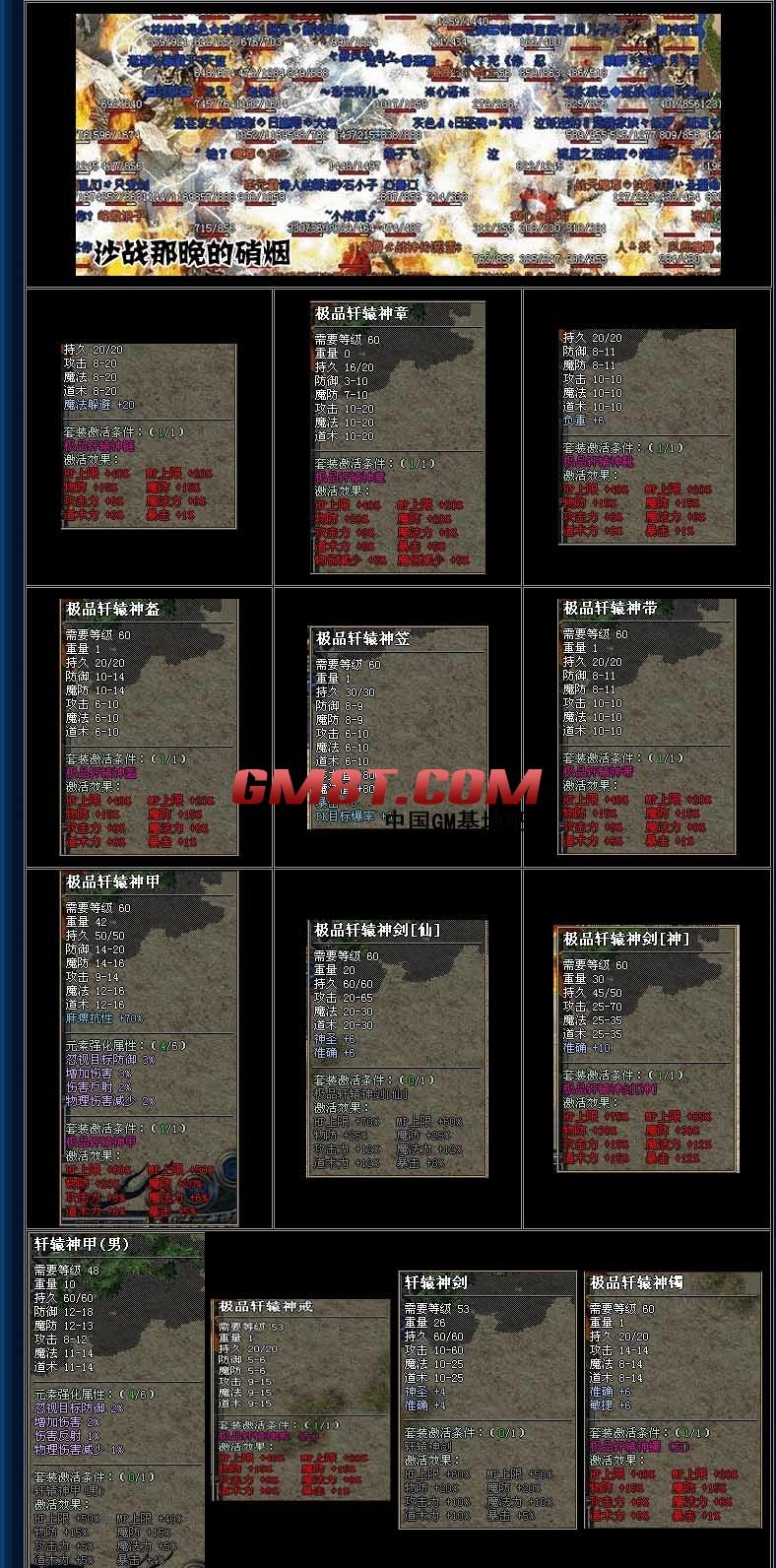 【爆率提示】:每个地图都有大小BOSS,1.2万-30万->都会爆轩辕,极品轩辕,杀戳神龍,包括勋章斗笠衣服武器爆一切装备.