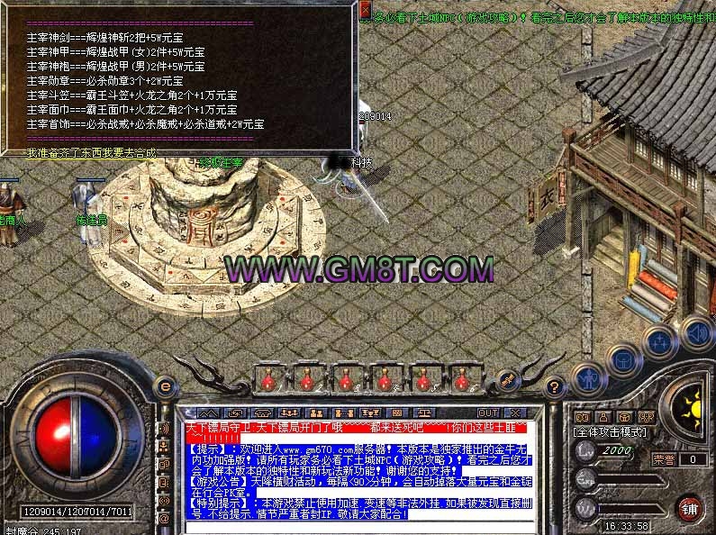 [特色]:升级速度 怪物爆率 装备属性 PK职业平衡性做了重大调整.调整了3个职业的平衡性