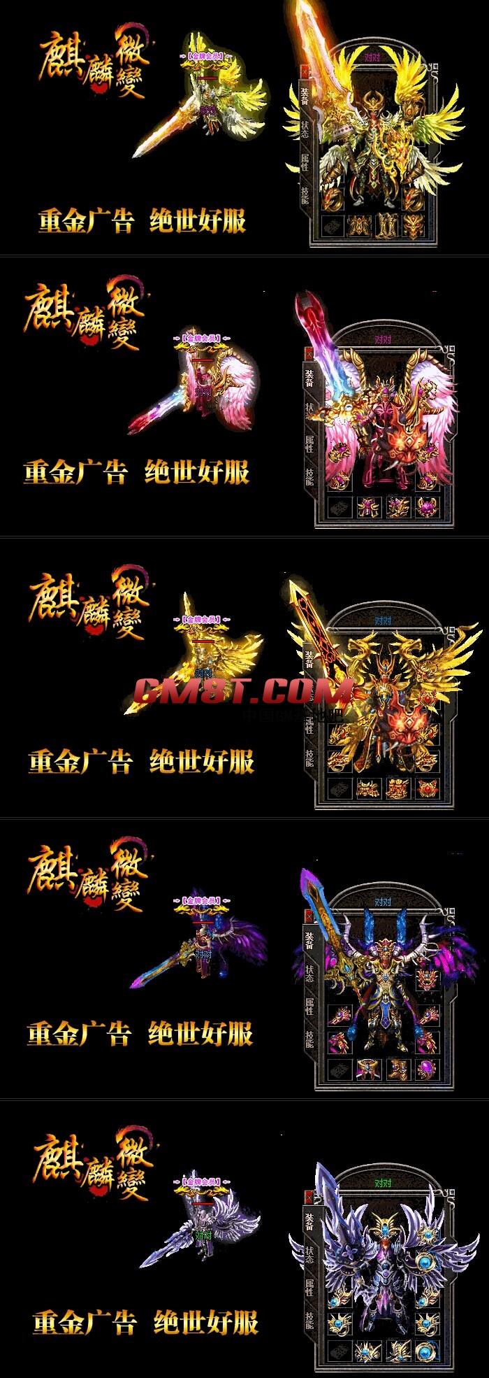 装备介绍 >>(赤月套)(雷霆套)(战神)(60级追魂套)(70级烈焰套)(80级武魔套)(90级御神套)(100级麒麟套))