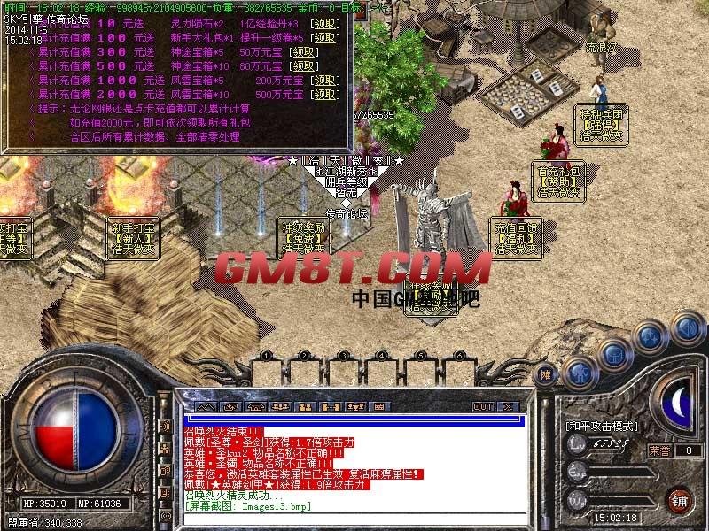 游戏介绍 >>如果你是免费玩家,推荐玩2个号,战士号一条龙机升级,法师号利用打装备赚取元宝,进游戏体验吧
