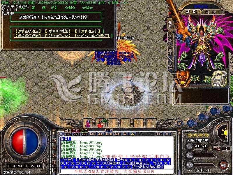 3、 大小怪物都可以暴元宝,特殊装备,字,积分,物品丰富,不会乏味,只要你肯花时间不花钱照样当爷!