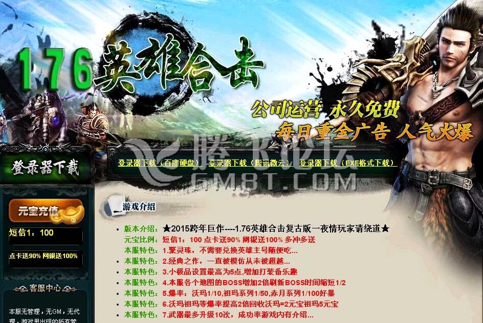 版本介绍:★2015跨年巨作----1.76英雄合击复古版一夜情玩家请绕道★