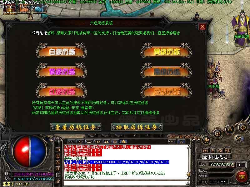 【历练系统】分为六个层次历练 白色 黄色 则色 黑色 红色 金色 随机历