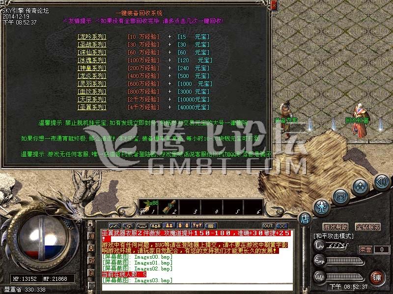 游戏介绍④ >>本游戏终级装备靠打,所有装备都可爆出.游戏中,元宝好赚,等级好升,散人只要有时间一样可以混到顶级装备!
